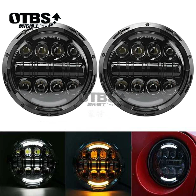 OTBS 1 Pair Running Lights 80W Car Led H4 7inch Car Accessories Angel Eyes Led Headlight For Lada N