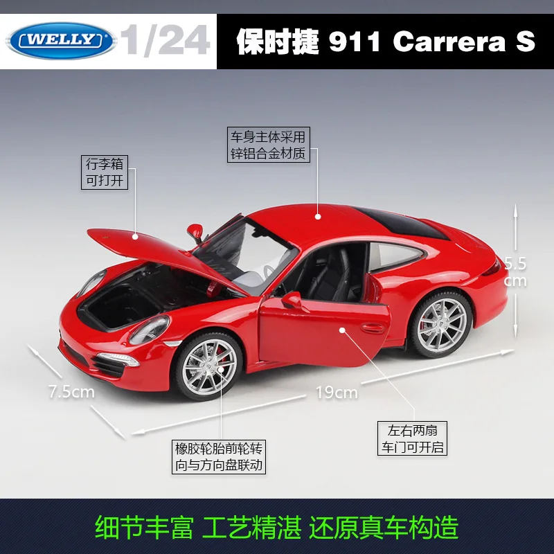 Welly 1:24 Porsche 911 CARRERA S alloy car model Diecasts & Toy Vehicles Collect gifts Non-remote c